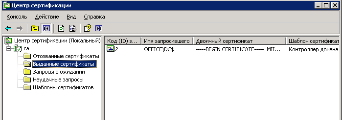 Шаблон сертификата "Компьютер". Это нужно, чтобы клиенты могли проверять валидность RADIUS сервера. После изменения политики необходимо запустить gpupdate, чтобы компьютер запросил сертификат у центра сертификации. После обновления политики в оснастке "Центр сертификации" должен появиться такой феншуй: